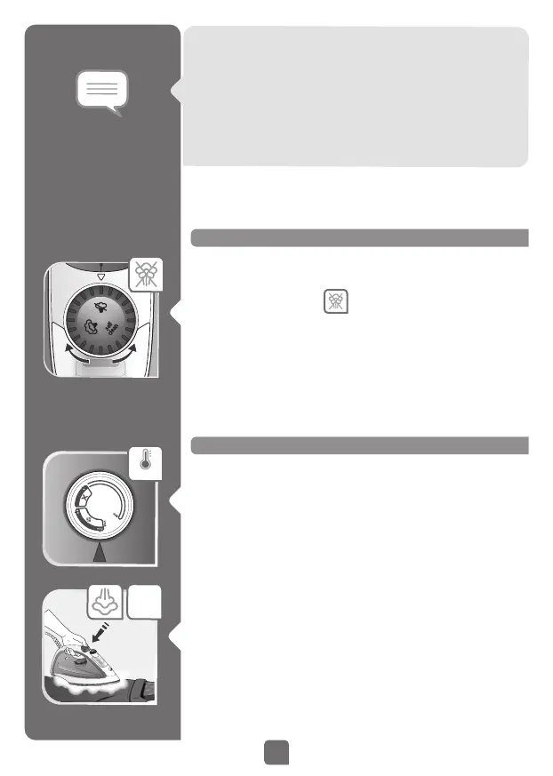 • Set the temperature according to the fabric to be ironed.