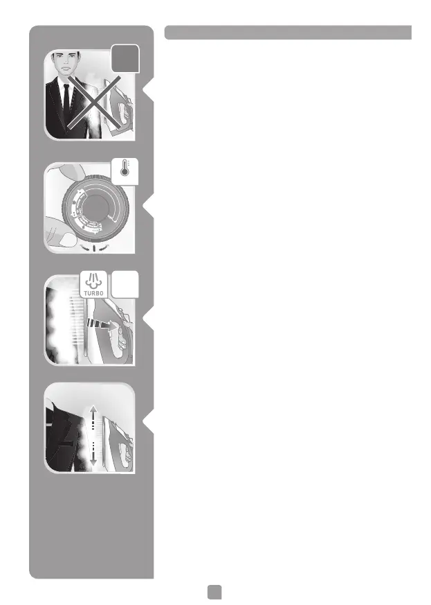 main. La vapeur est très chaude ; ne défroisser jamais à