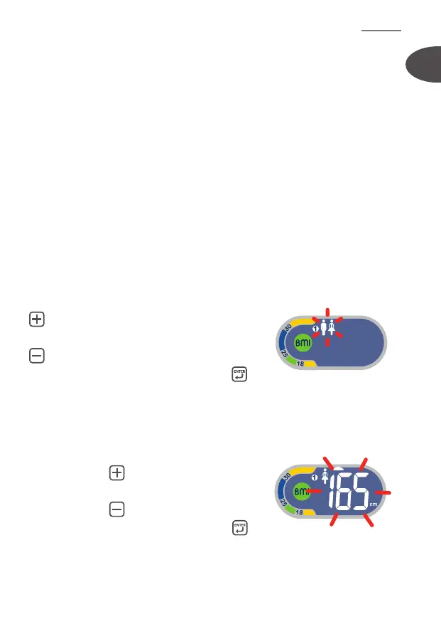 geslacht, uw lengte en uw leeftijd selecteren. Ga op het weegplateau staan