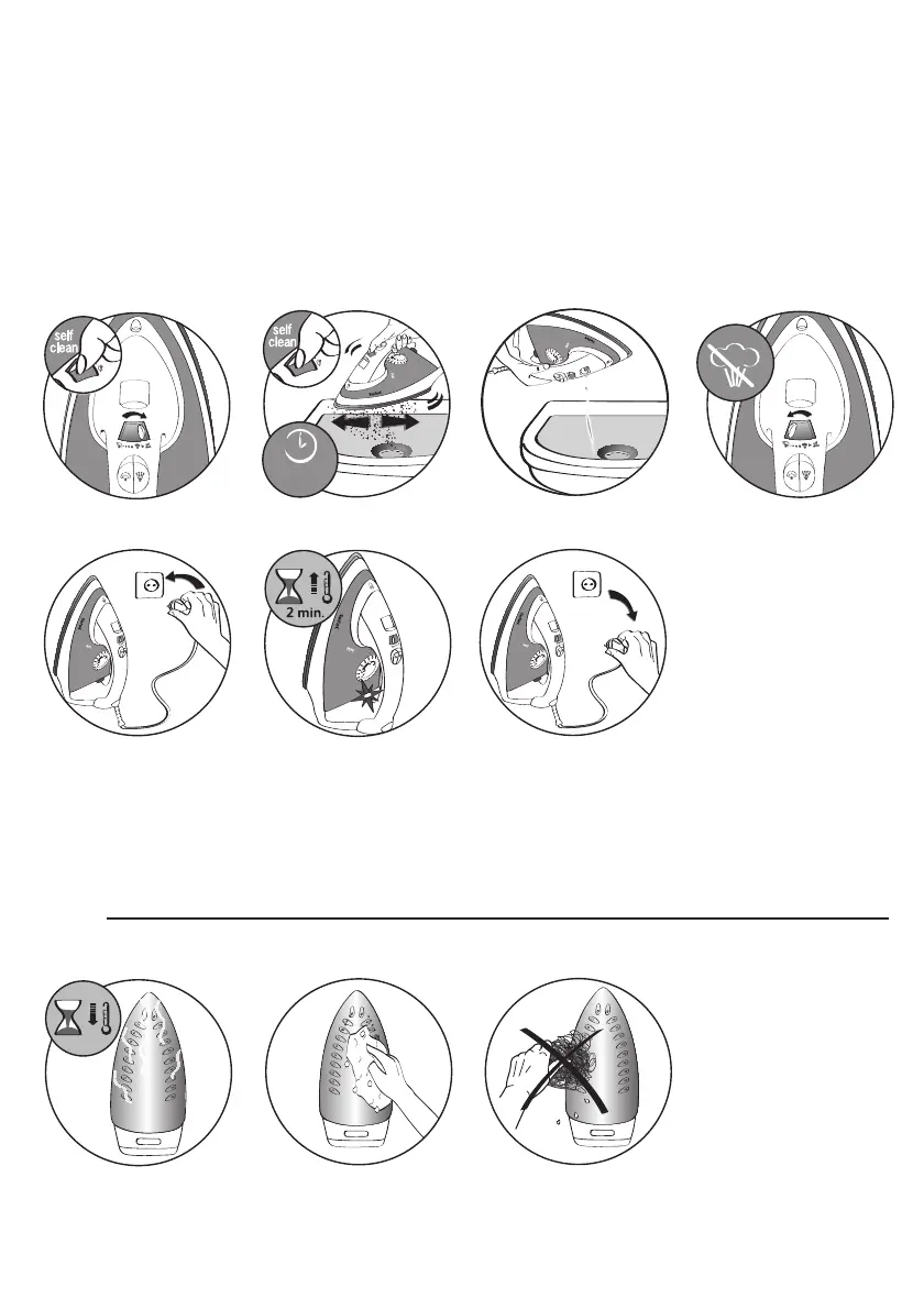 Puhdista pohja • Rengor sålen • Rengöring av stryksulan • Rengjøre sålen