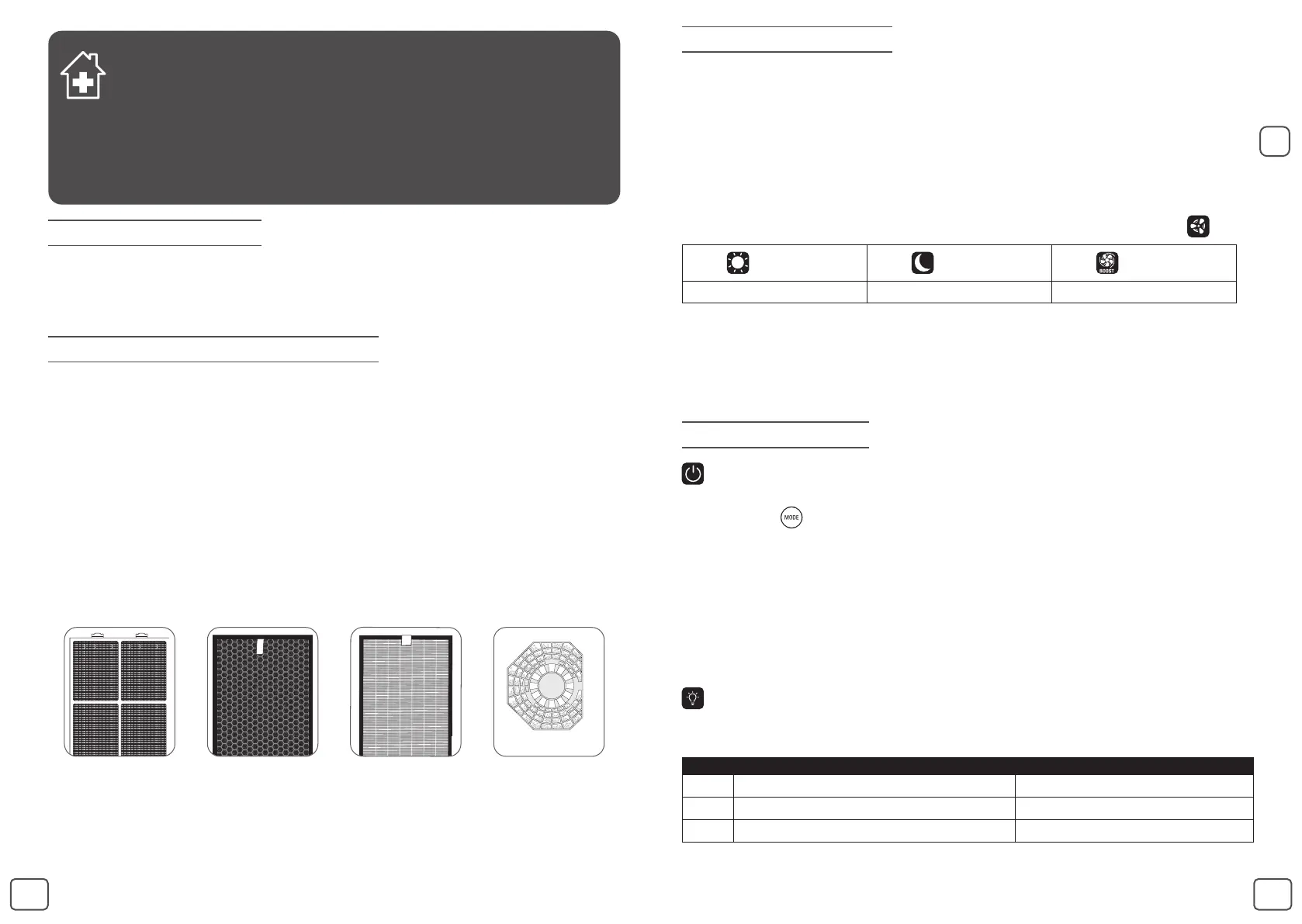 1. Lorsque le puricateur d’air est éteint, maintenez enfoncé le bouton de sélection du mode