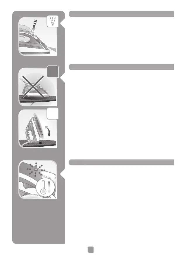 • Do not lay the iron down on the soleplate; use the heel