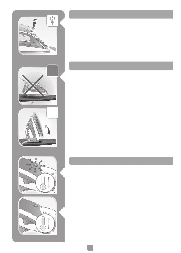 • Lorsque vous repassez à sec ou à la vapeur, appuyez