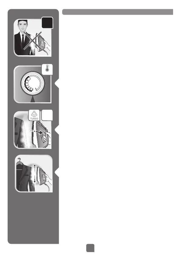 • Maintenez le fer à quelques centimètres du tissu pour ne pas