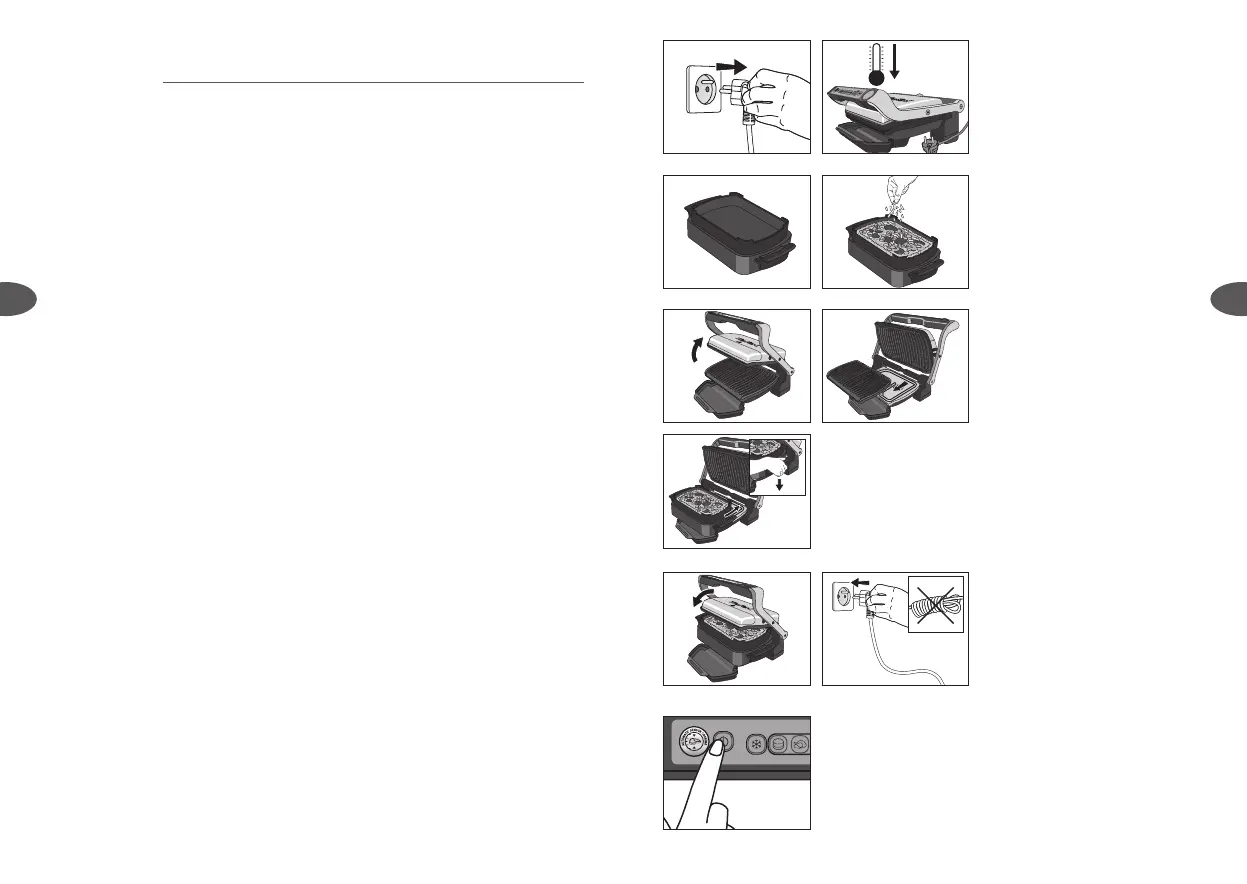 • Никогда не нагревайте гриль без двух пластин гриля или верхней пластины и