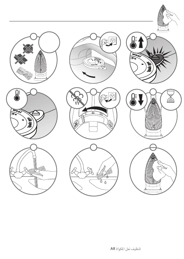 TH การทำความสะอาดแผ่นหน้าเตารีด • KO 열판 세척하기 •