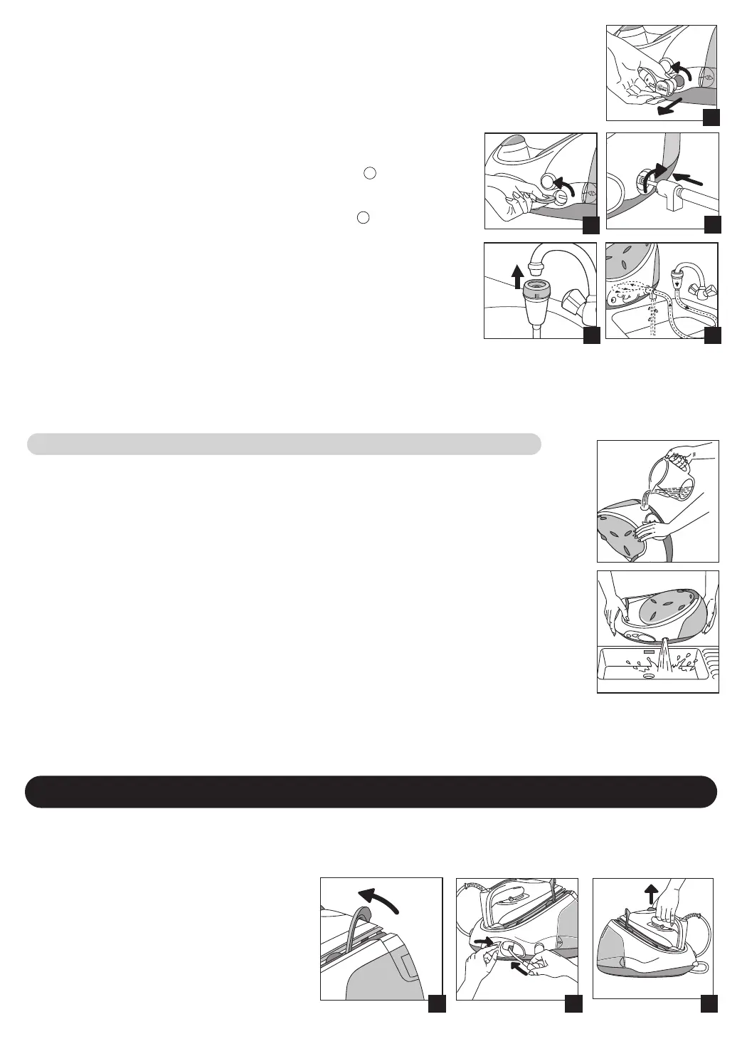 6. Schütteln Sie den Dampfgenerator einige Male und entleeren Sie ihn über einen Behälter