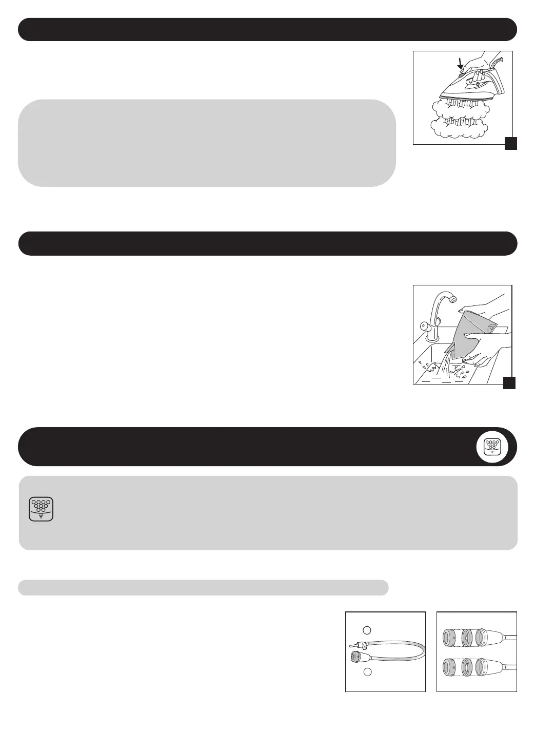 • Never hold the iron or the base unit under the tap.