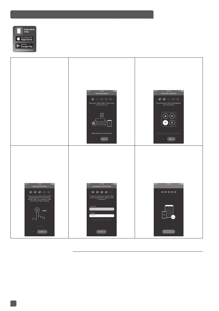 Установите приложение Pure Air by Tefal и следуйте указаниям на экране смартфона:
