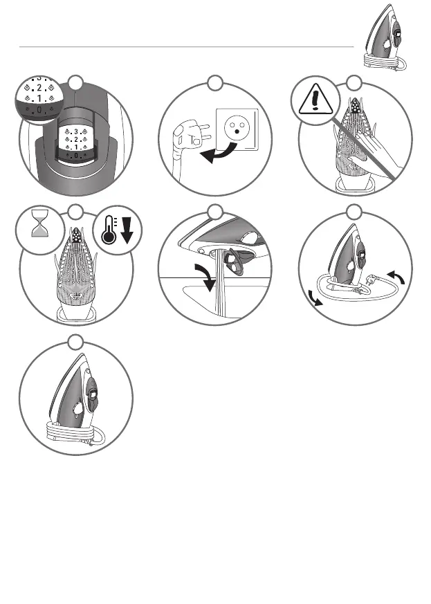 *DE Aufbewahrung des Bügelautomaten • FR Rangement du fer • NL Opbergen van het strijkijzer •