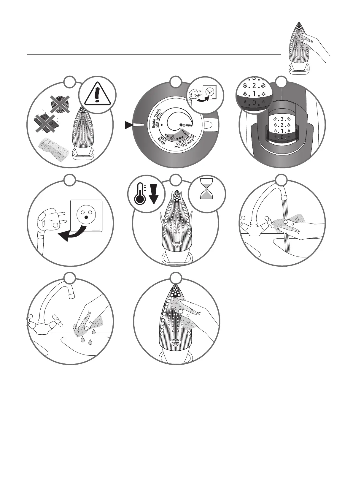 *DE Reinigung der Bügelsohle • FR Nettoyage de la semelle • NL Reinigen van de strijkzool •