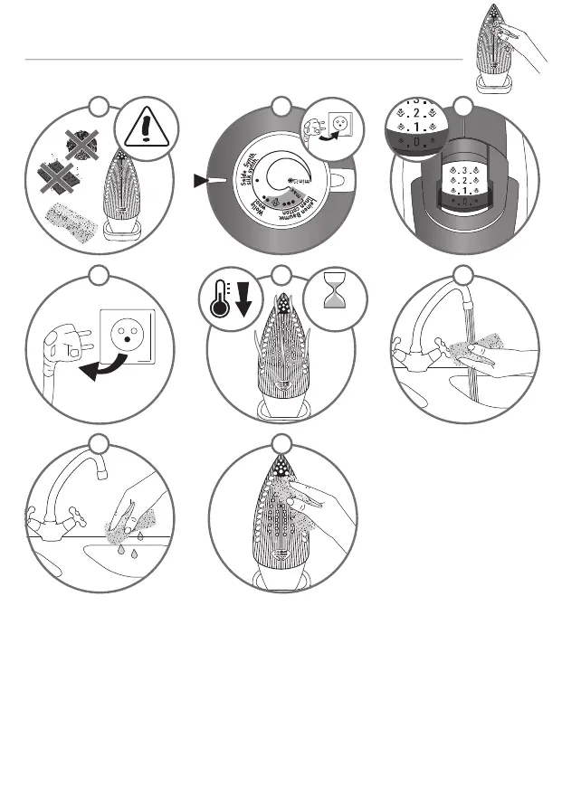 *DE Reinigung der Bügelsohle • FR Nettoyage de la semelle • NL Reinigen van de strijkzool •