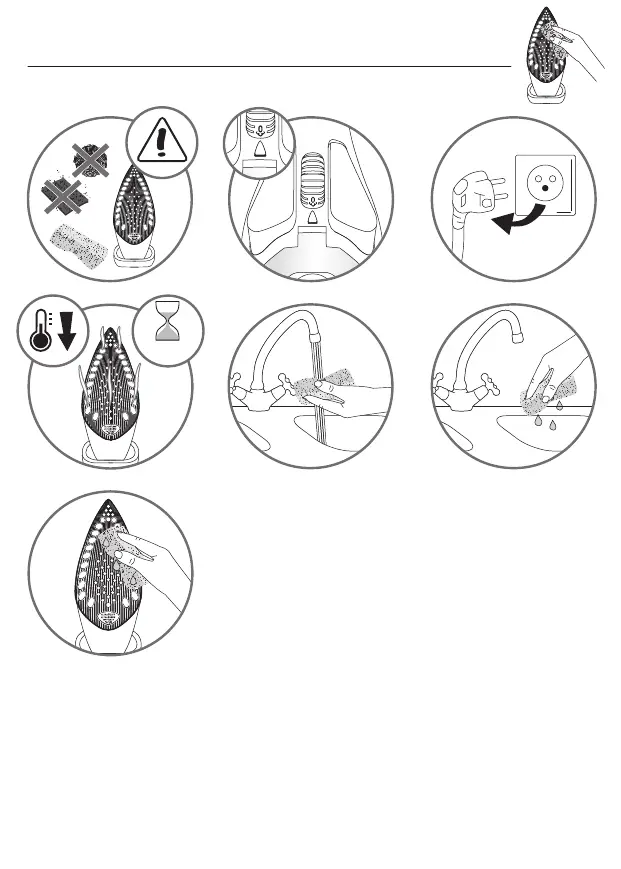 *DE Reinigung der Bügelsohle • FR Nettoyage de la semelle • NL Reinigen van de strijkzool •