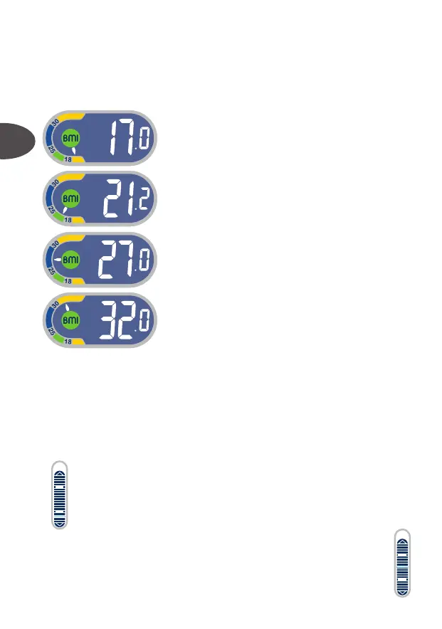 • Vågen räknar automatiskt ut ditt BMI och tolkar det enligt följande skala: