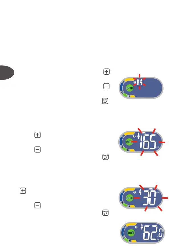 Du skal angive køn, højde og alder. Træd op på vejepladen og følg sekvens