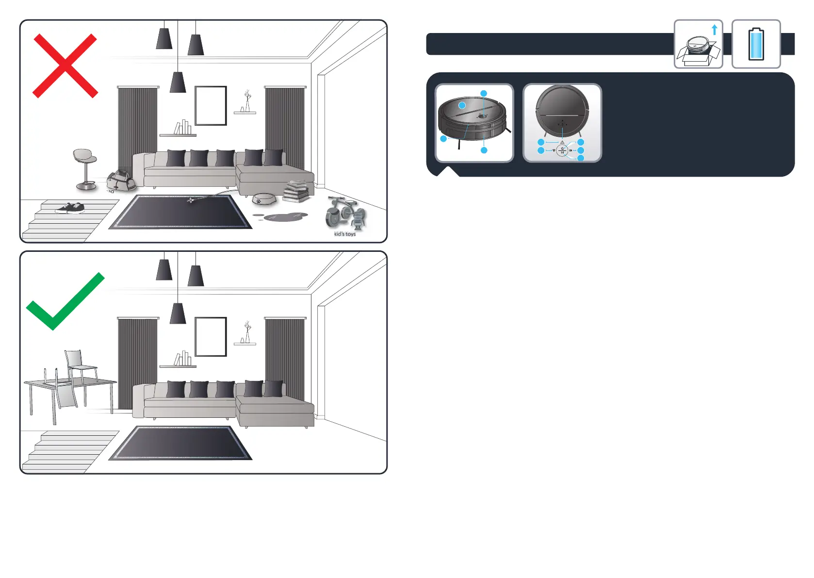 või liiga õhukesed (nt vannitoa vaip) / LV Jūsu robots var saskarties ar grūtībām uz paklāja, ja tas ir ar bārkstīm, pārāk biezs, ar garām pūkām, pārāk viegls (piem., vannas istabas paklājs) / LT Jūsų robotas