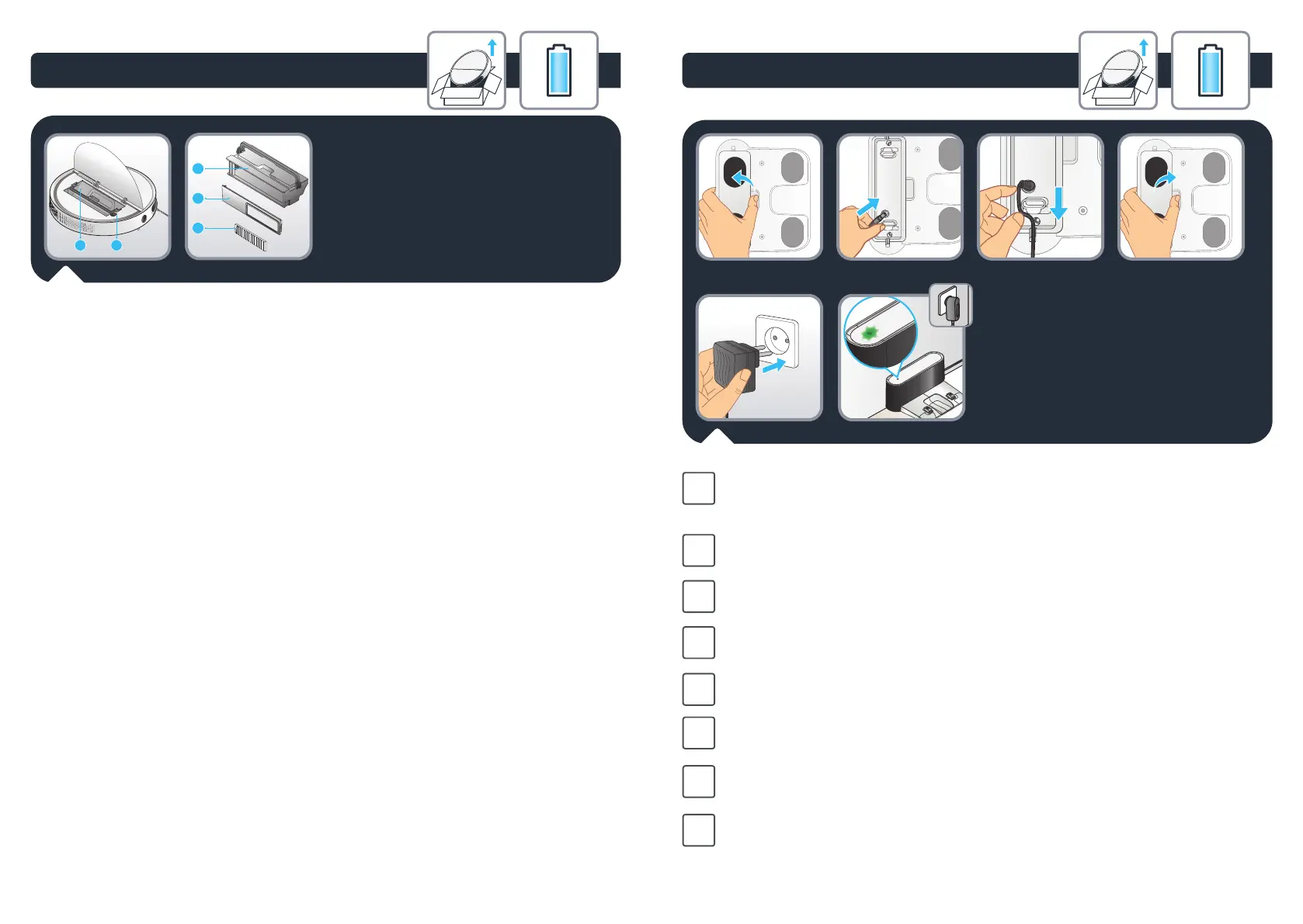 전원 어댑터를 충전 도크 및 전원 공급 장치에 연결하십시오. 작동 중에 진공 청소기가