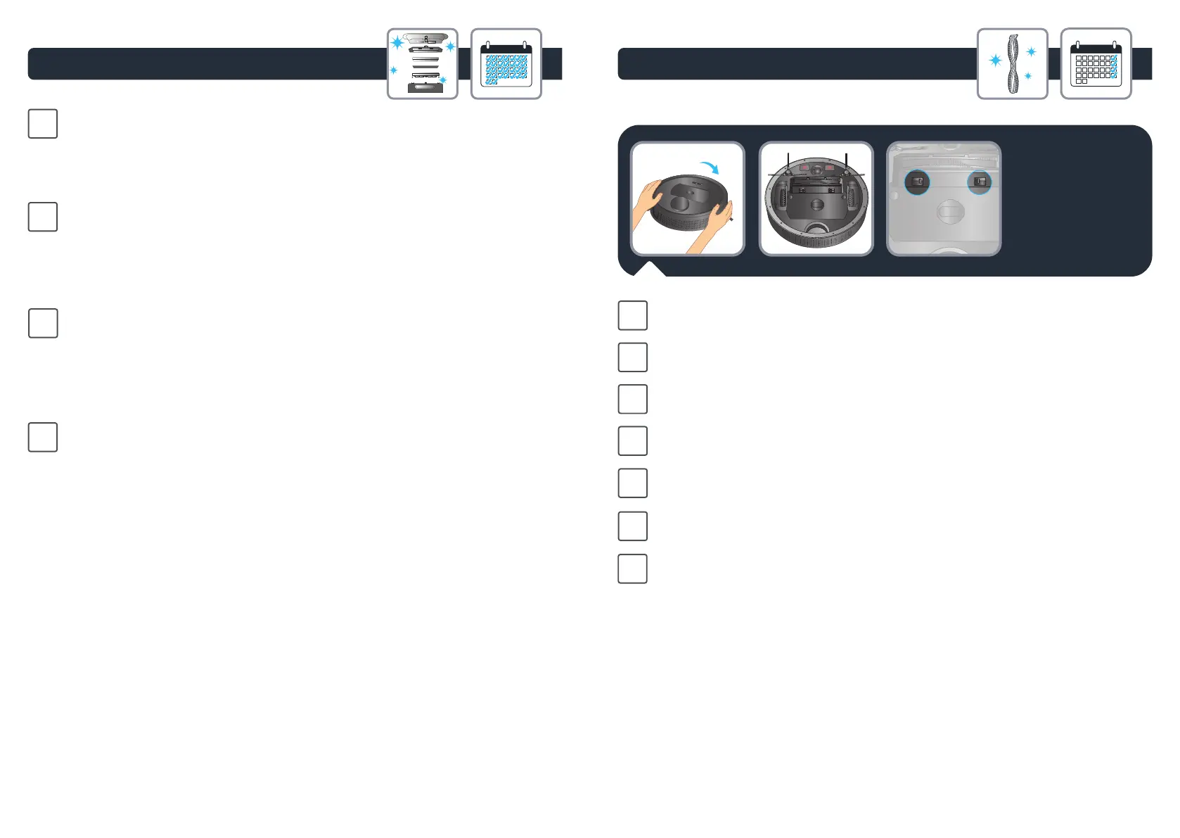 Lülitage robot VÄLJA ja pöörake pea alaspidi. Avage harjapiire kahe lukusti abil.