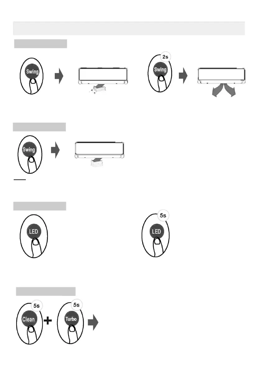 MODE ve SWING düğmelerine tekrar bir saniye boyunca basılı tutarak kanatçığı sıfırlayabilirsiniz