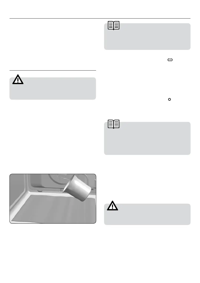Do not pour water into a hot oven as this can