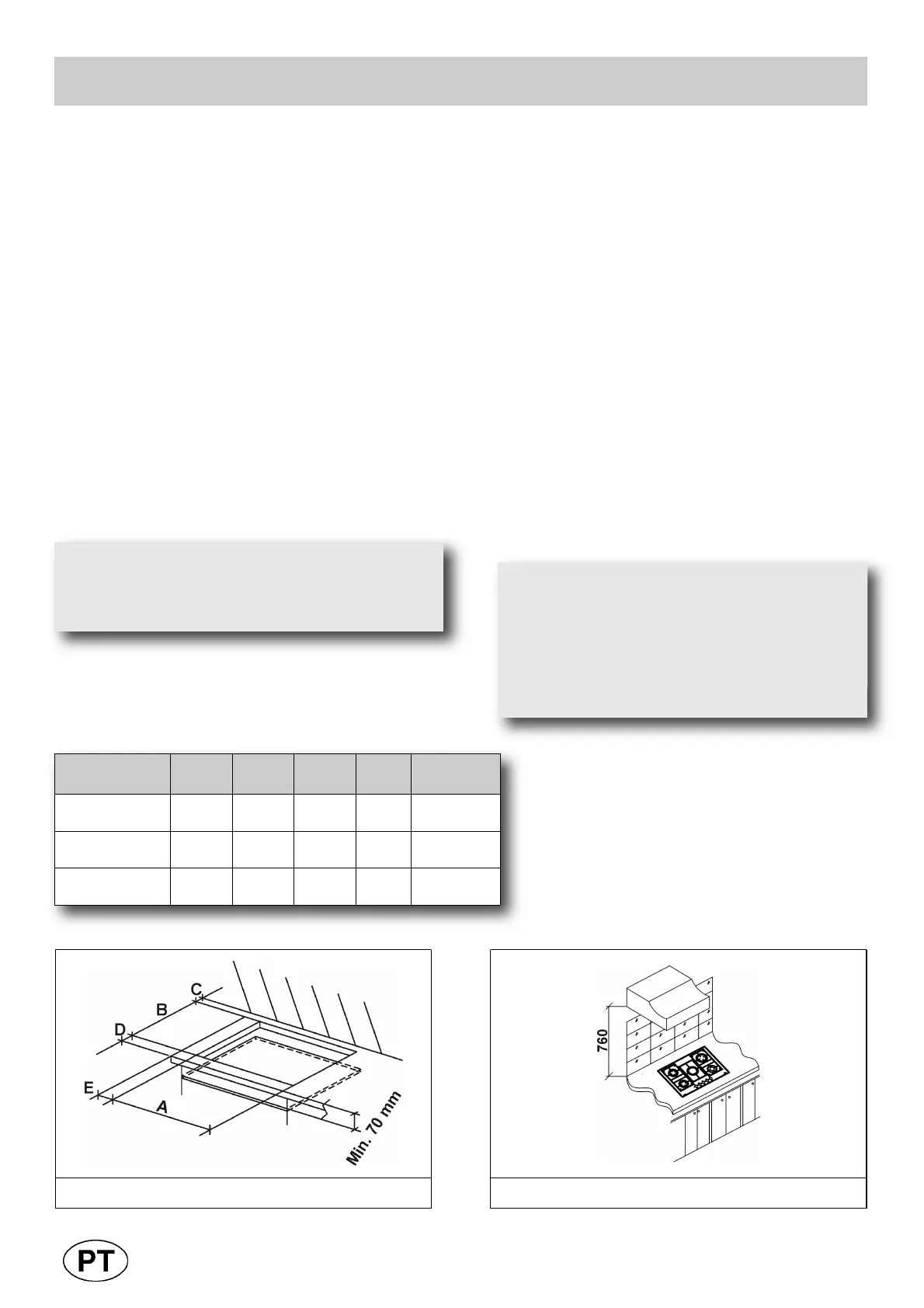 abertura para o encastre com as dimensões indicadas na