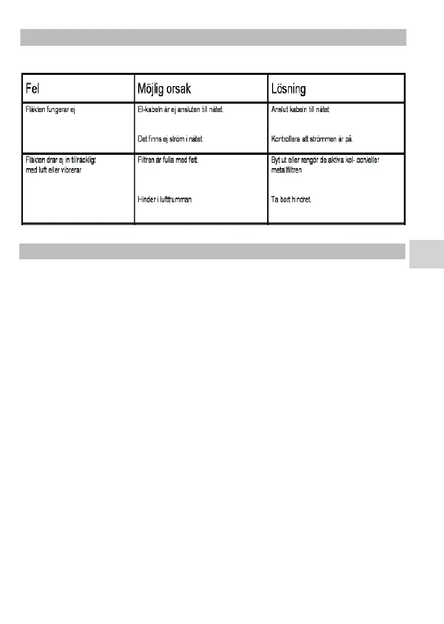 Innan du kontaktar Behörig Teknisk Service, kontrollera följande: