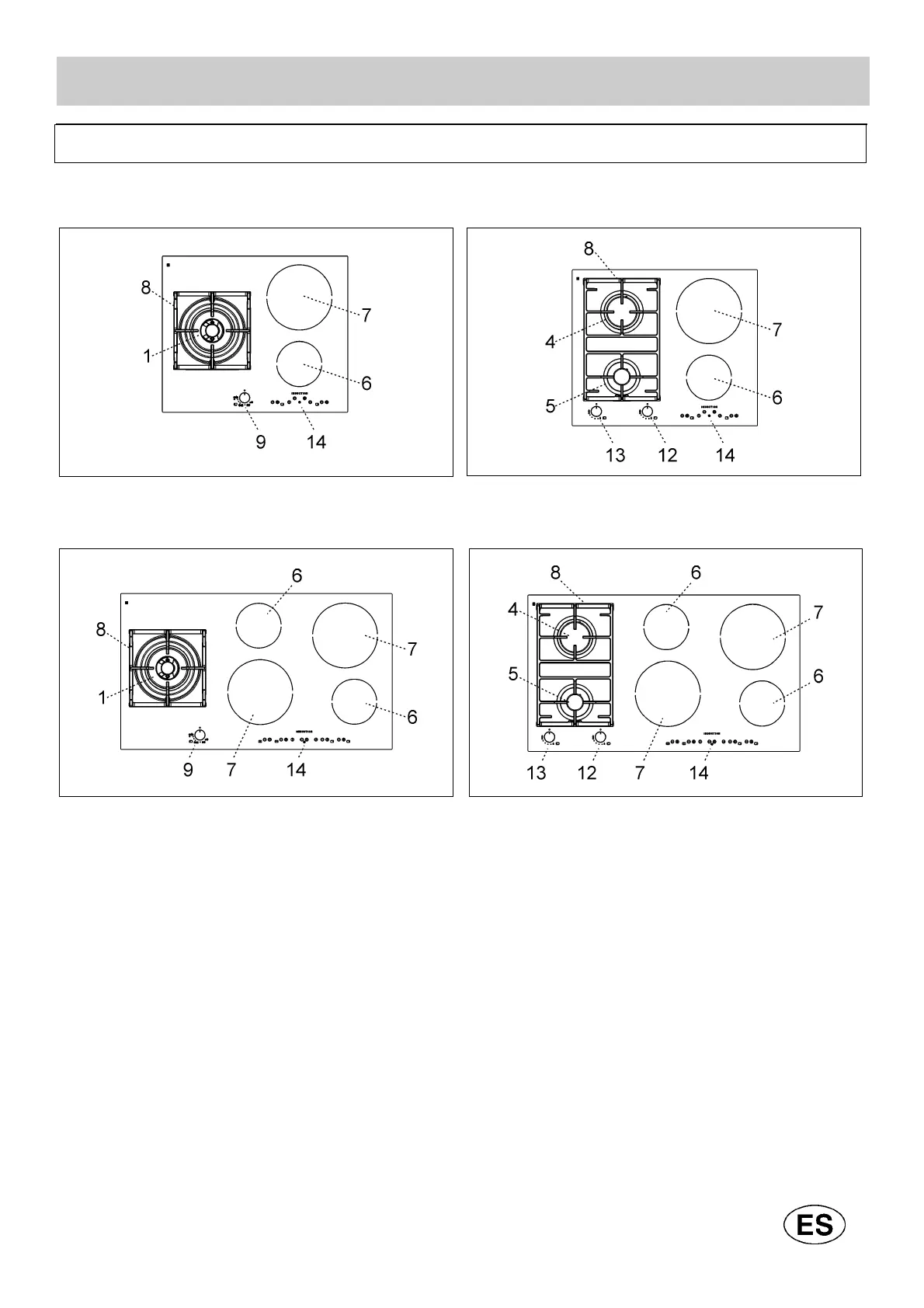 El aparato dispone de 2/4 zonas de cocción de varias dimensiones y con diferentes niveles de potencia.