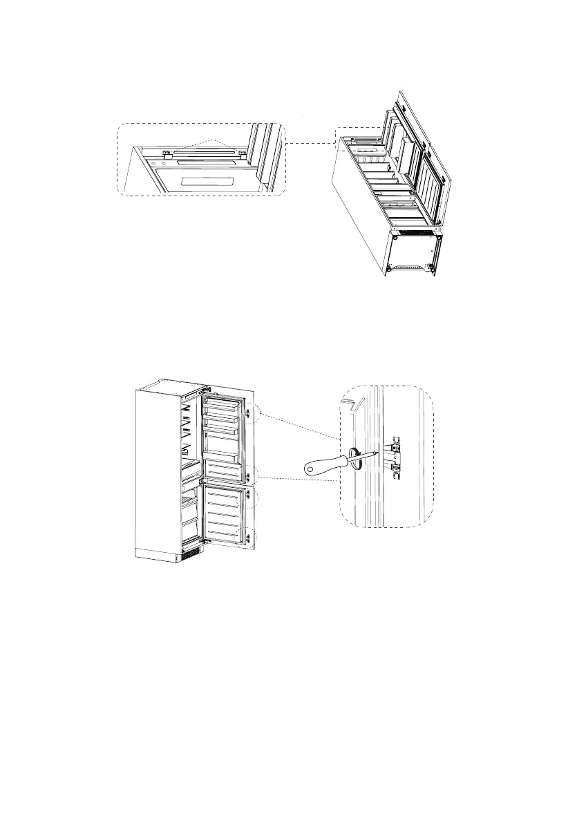 refrigerator, then fix the block to the door of cabinet with screw and install screw caps. Fix the upper