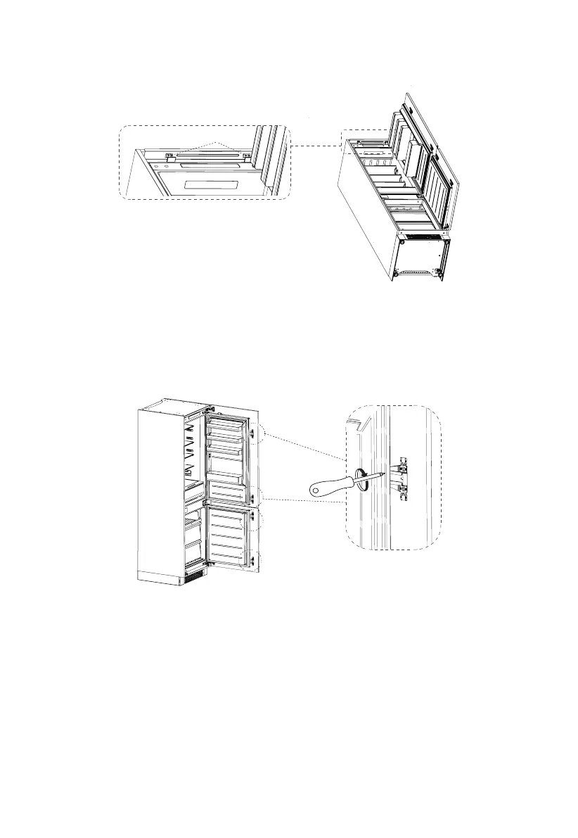 capuchons de vis. Fixez la porte supérieure du réfrigérateur à la porte de l'armoire de la même manière.