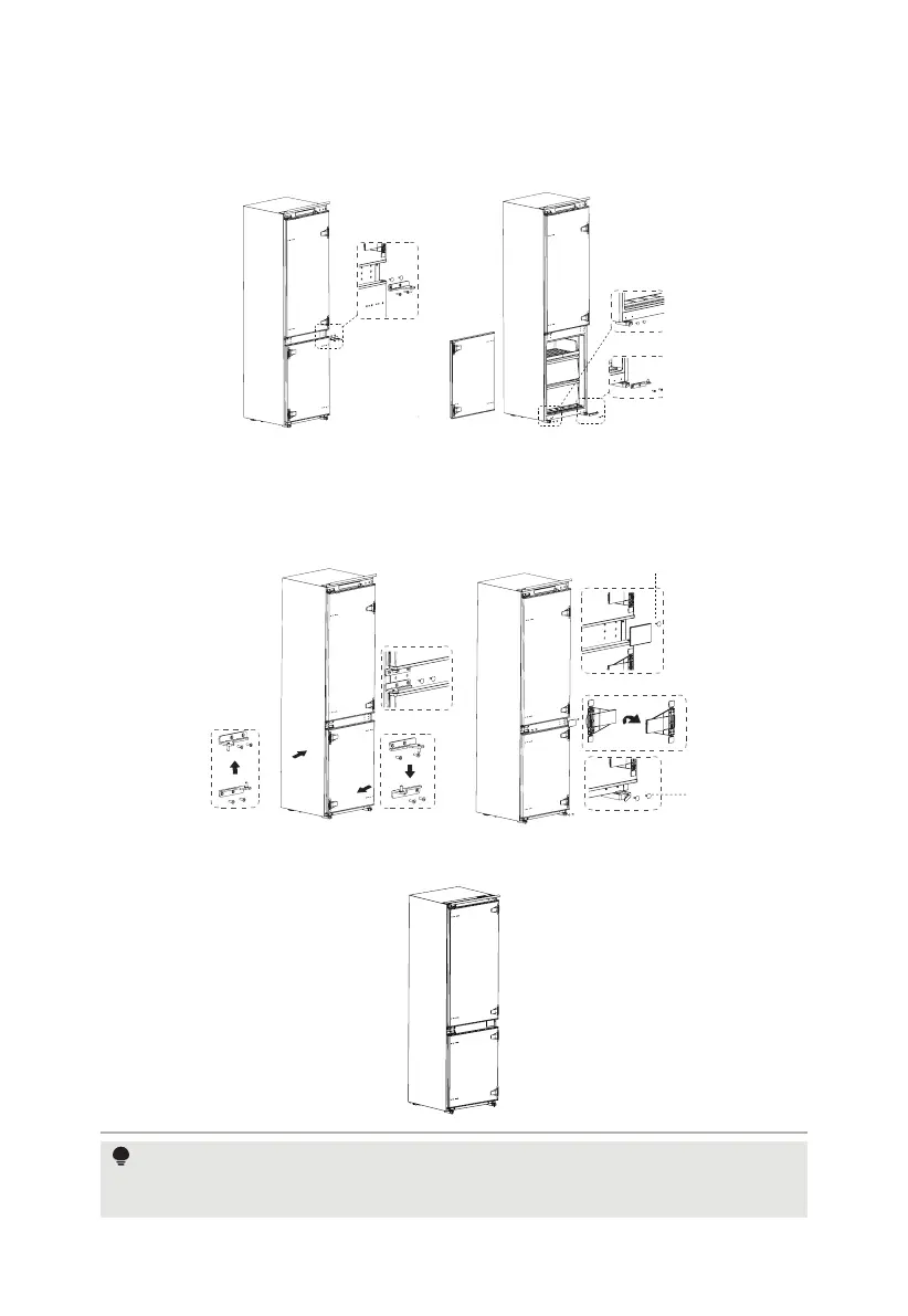 Retire os dois blocos fixos da porta do congelador, rode-os 180° e instale-os no outro lado da porta do