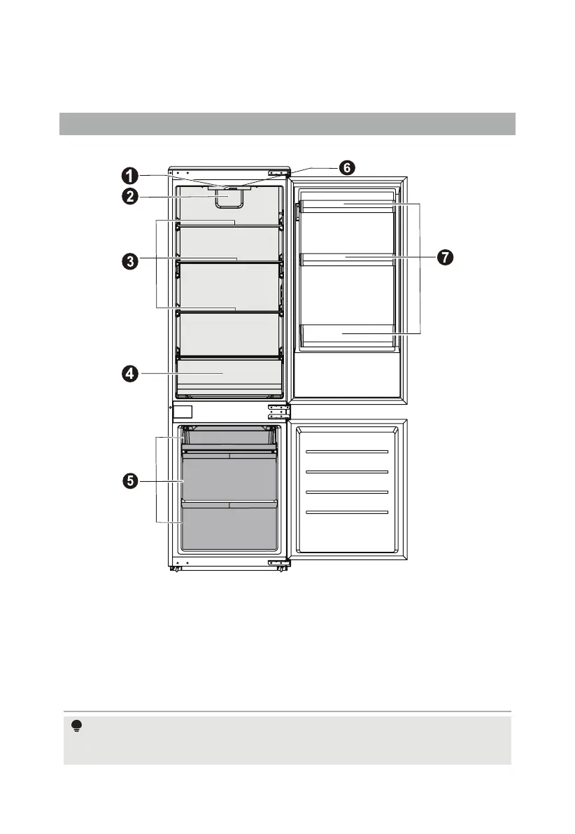 gavetas, prateleiras e balde de gelo, na posição indicada pelo fabricante.