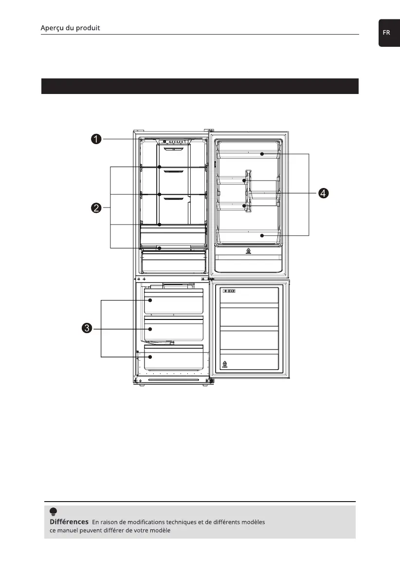 que les plateaux, les tiroirs, les étagères et la boîte à glaçons à la position fournie par le