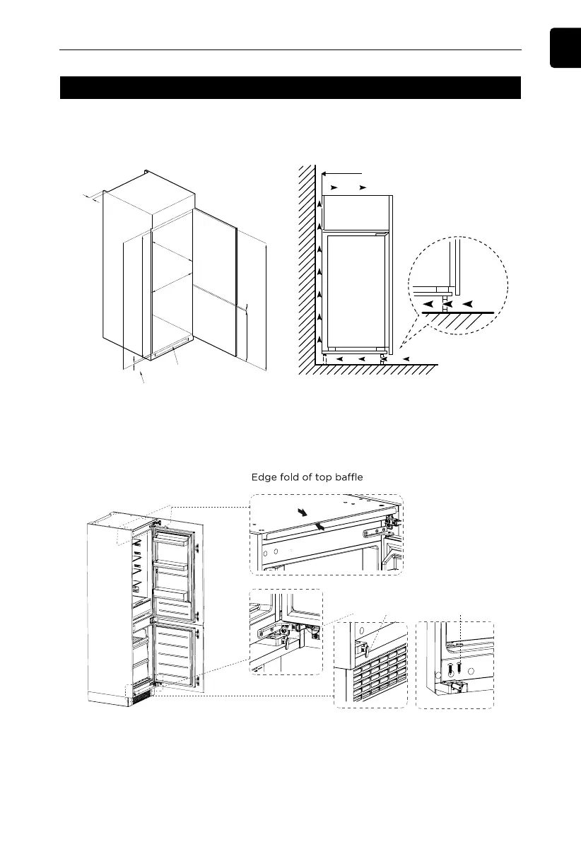 2. Empuje el refrigerador hacia el gabinete y ajústelo para asegurarse de que el borde plegado