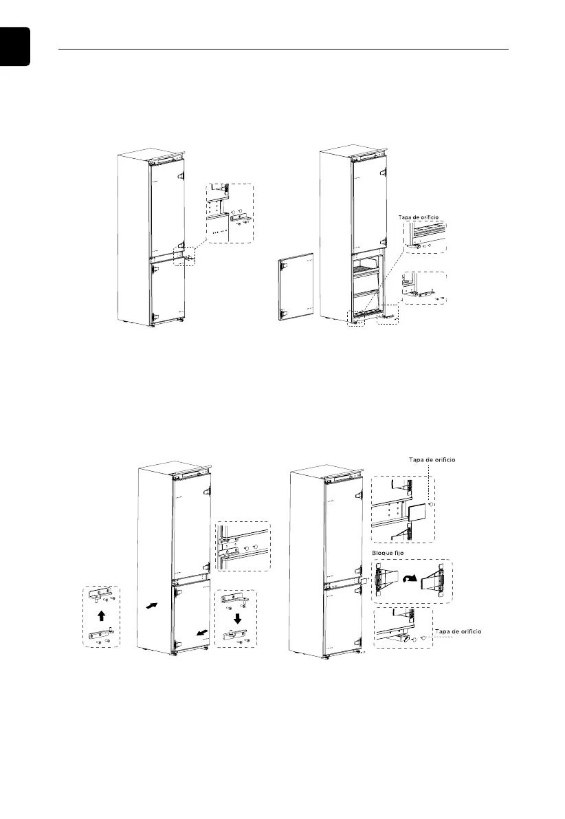 9. 9. Retire los dos bloques fijos de la puerta del congelador y gírelos 180° e instálelos en el otro