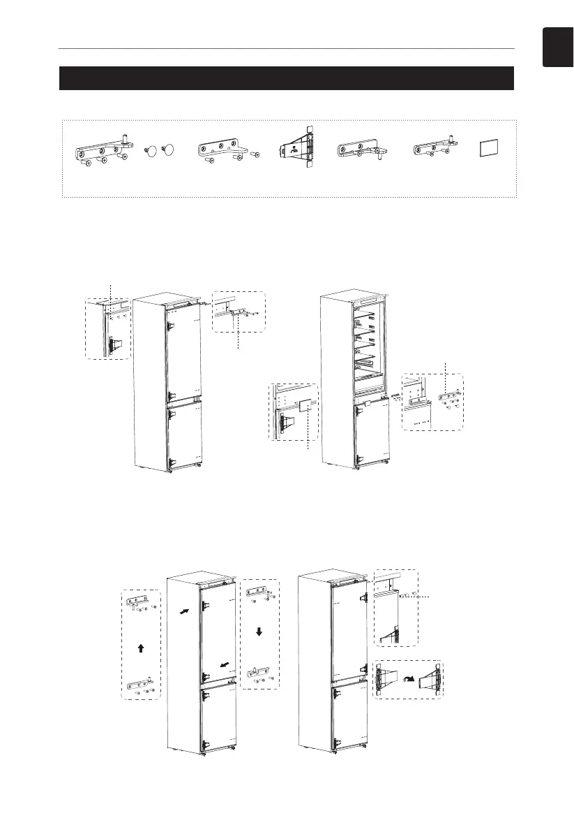 5. Extraiga los dos bloques fijos de la puerta del frigorífico y gírelos 180° e instálelos en el otro