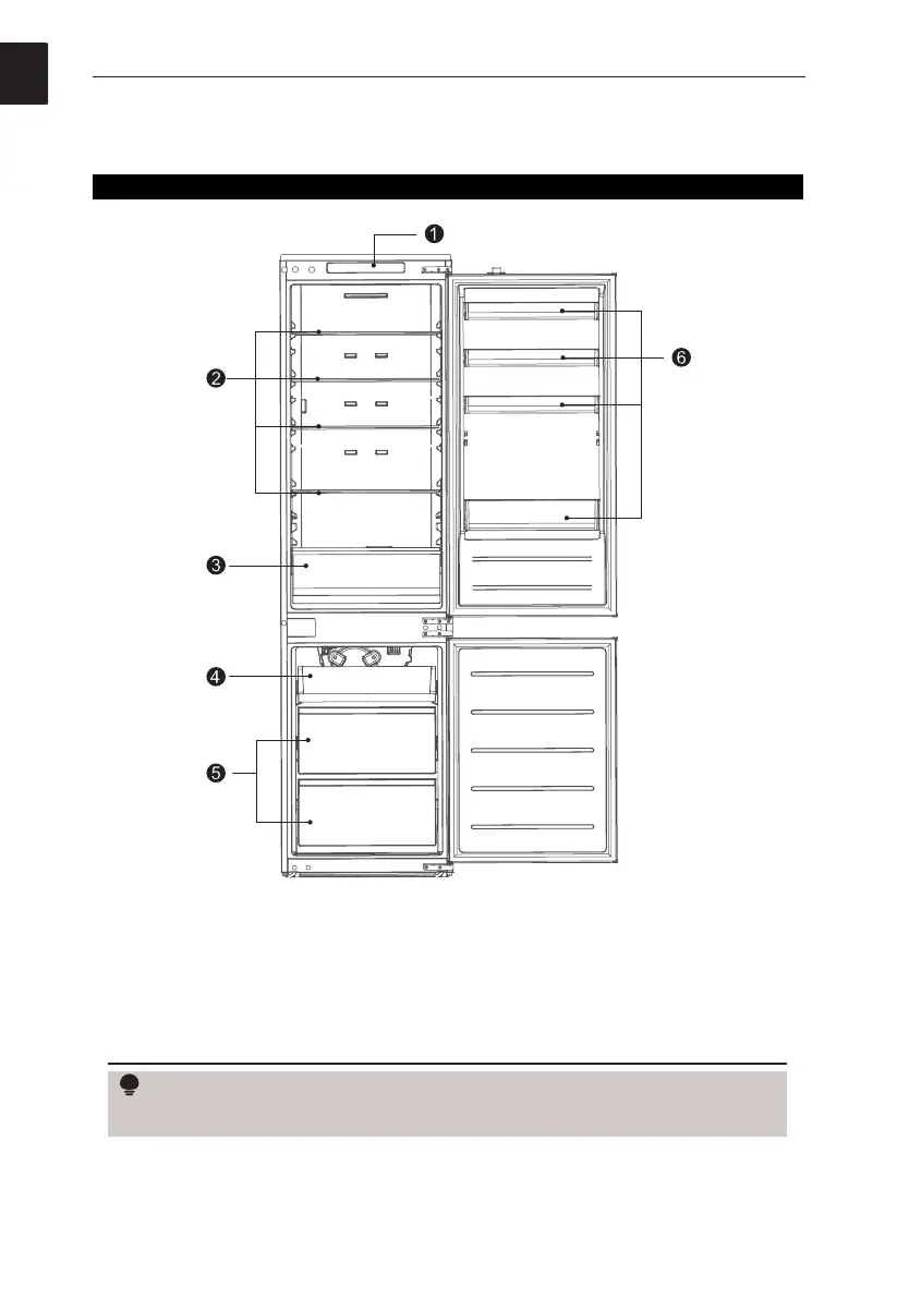 como bandejas, cajones, estantes y cubitera en la posición de suministro del fabricante.