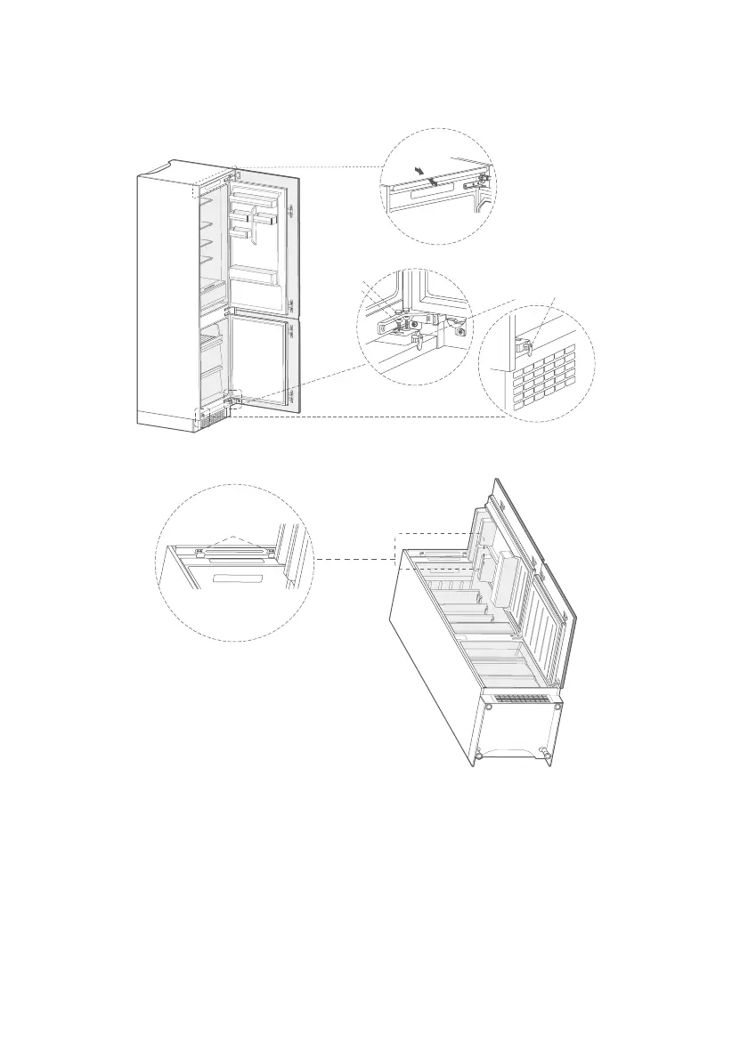 and install screw caps. Fix the upper refrigerator door to the cabinet door in the same way.
