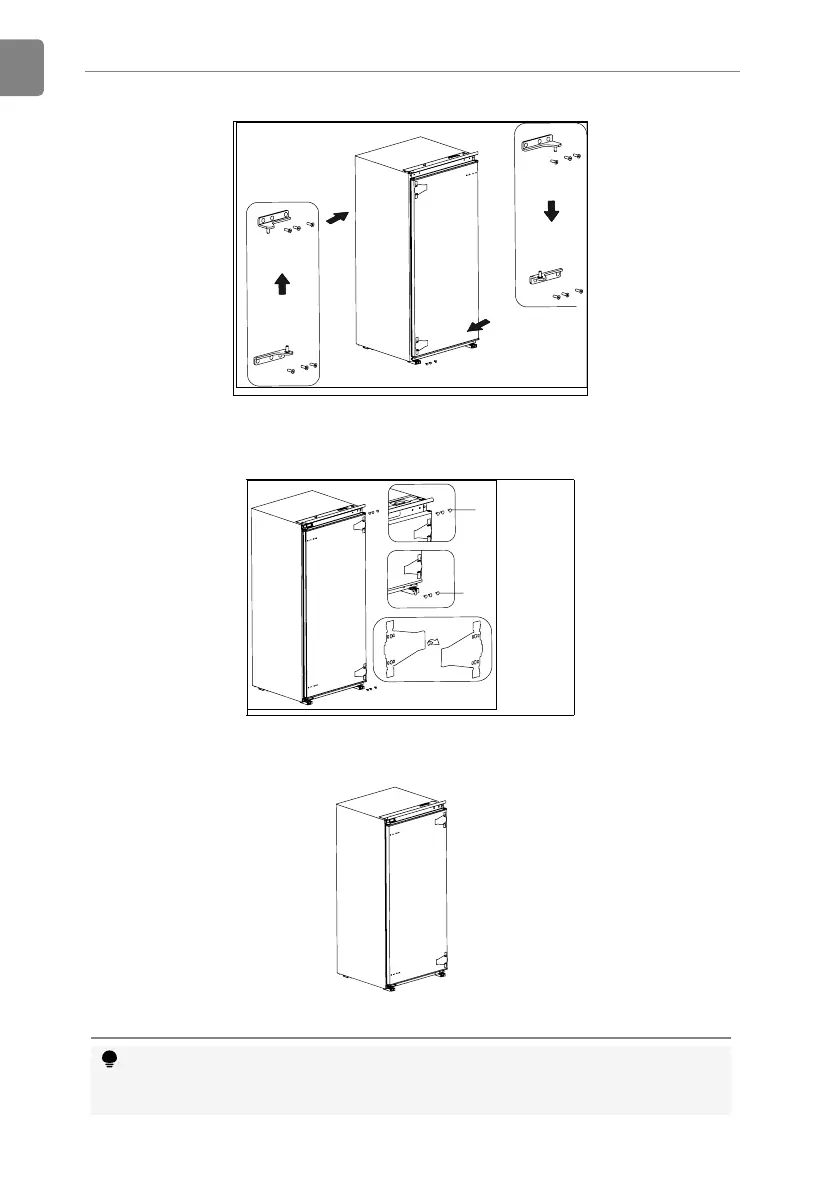 5. Remove the two fixed blocks of refrigerator door and rotate them for 180° and install them on