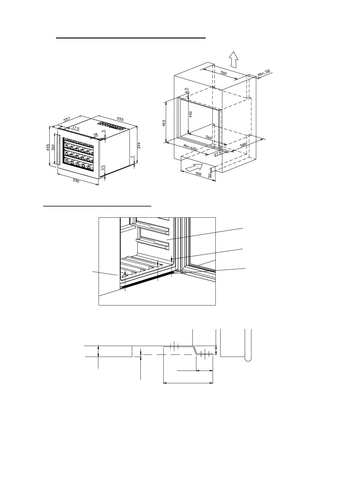 1. Install the wine cooler (a) into cabinet (b) in correct position