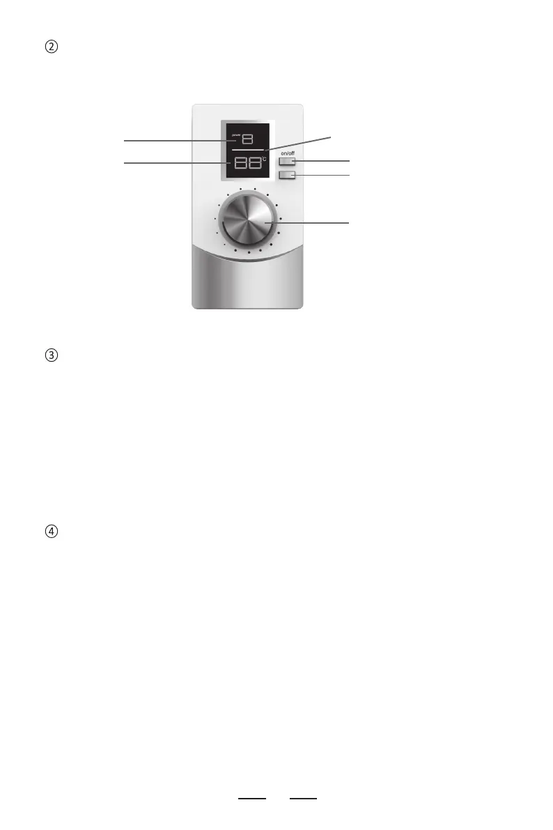 "2" es el botón de on/off, al presionar, el calentador de agua empieza a