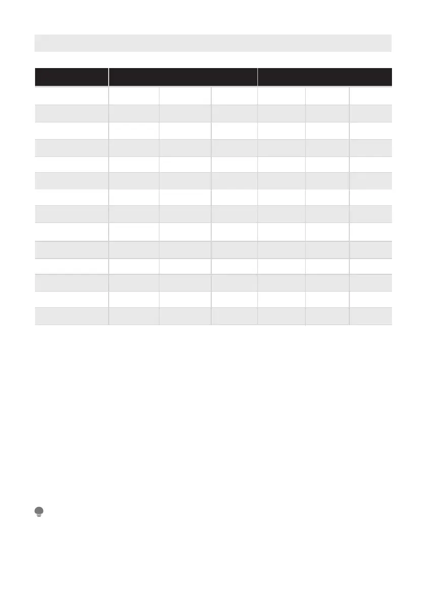 • Os parâmetros nesta tabela são apenas para referência do usuário. Os parâmetros reais