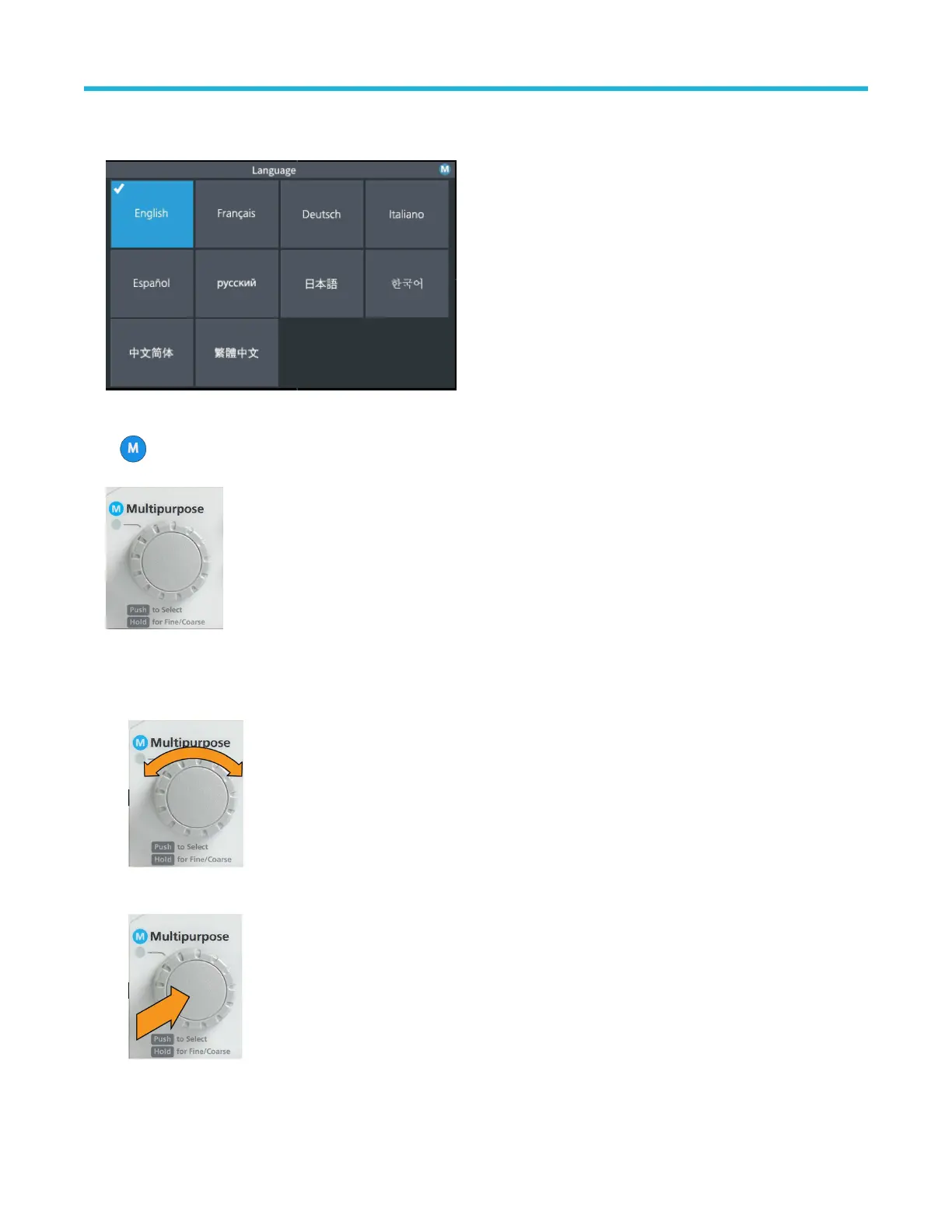 A icon on a menu, message, or dialog box label means that you can use the Multipurpose knob to select and click values in that