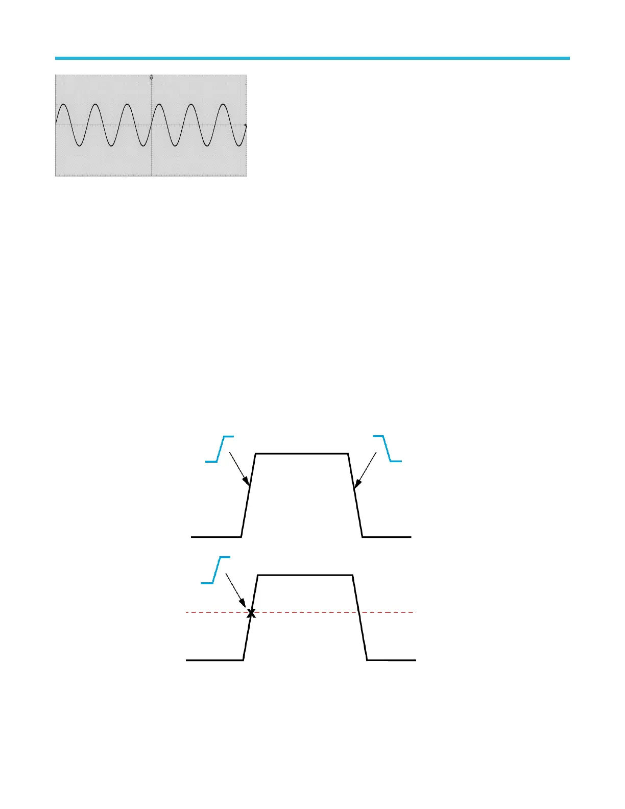 oscilloscope to find the trigger point on the rising or the falling edge of a signal. The level sets where on that edge the trigger point occurs.