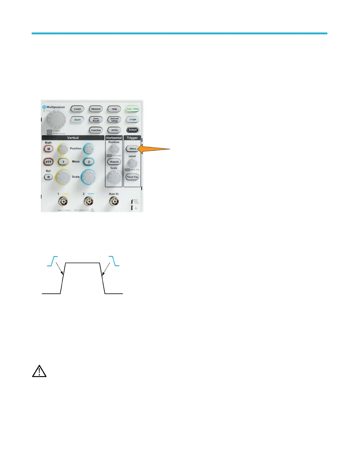 Use this procedure to set the oscilloscope to trigger on the rising or falling edge of a waveform.
