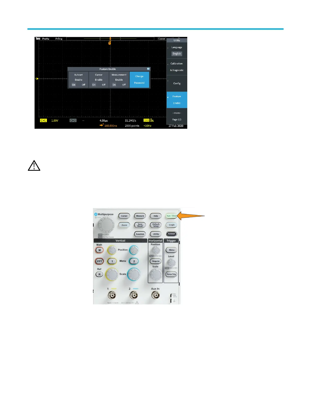 After you have defined the acquisition and trigger parameters, start acquiring and displaying a waveform with the Run/Stop or Single