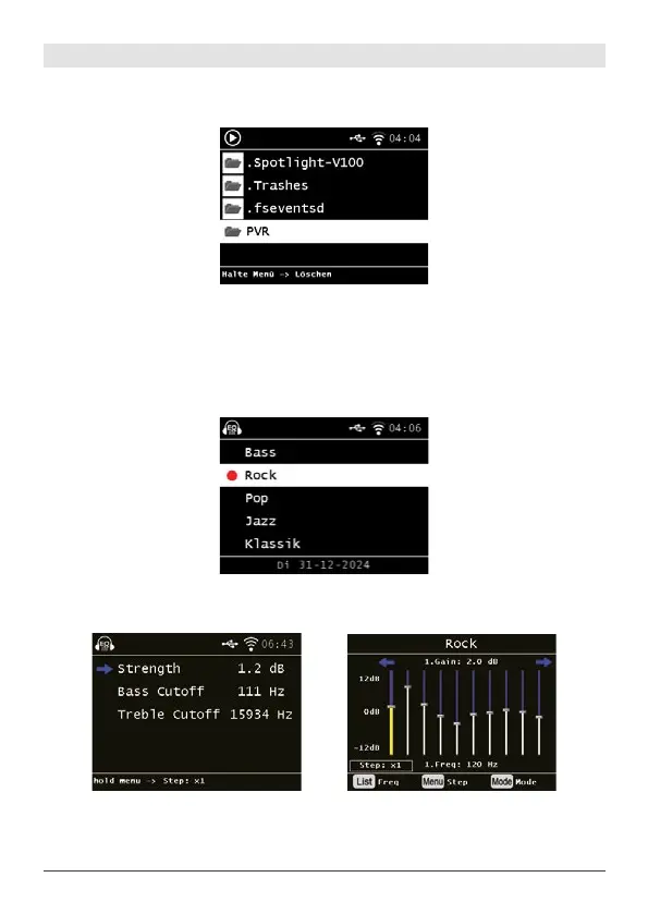 om de optie Equaliser te selecteren in het hoofdmenu en druk vervolgens op de knop