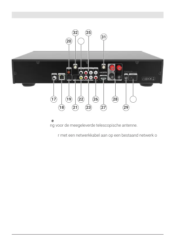Antenneaansluiting voor de meegeleverde telescopische antenne.