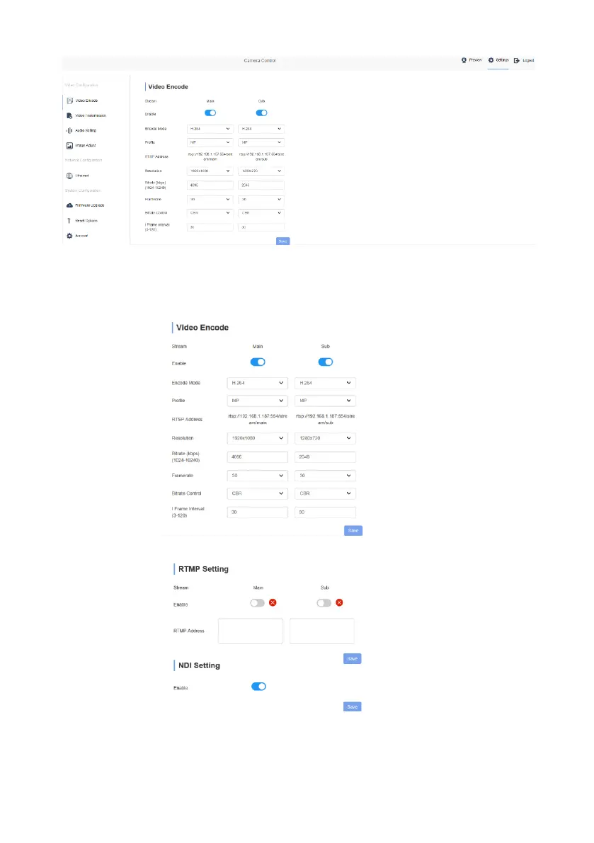 "video Transmission":RTMP and NDI settings are available, as shown in the following figure: