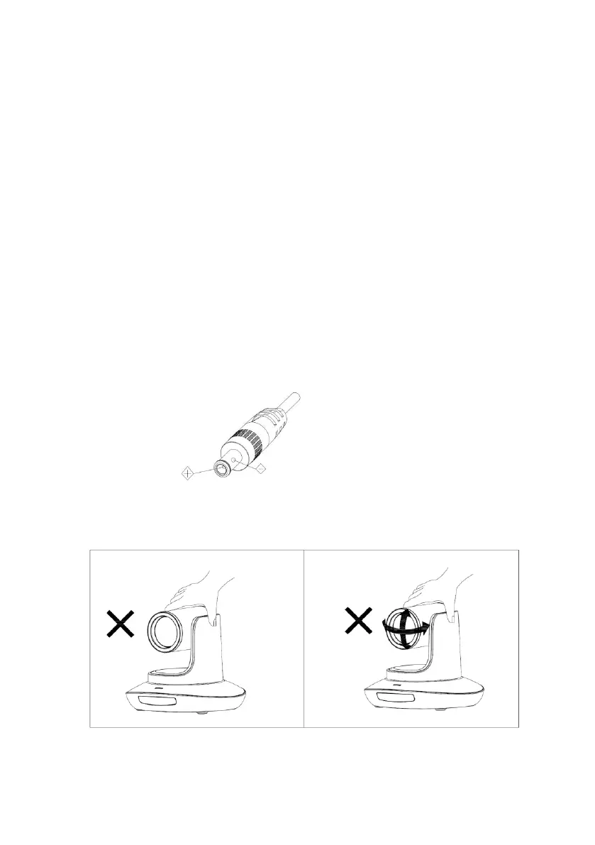 10. Do not move the camera by holding the camera head. To avoid mechanical trouble, do not rotate the camera head by hand.