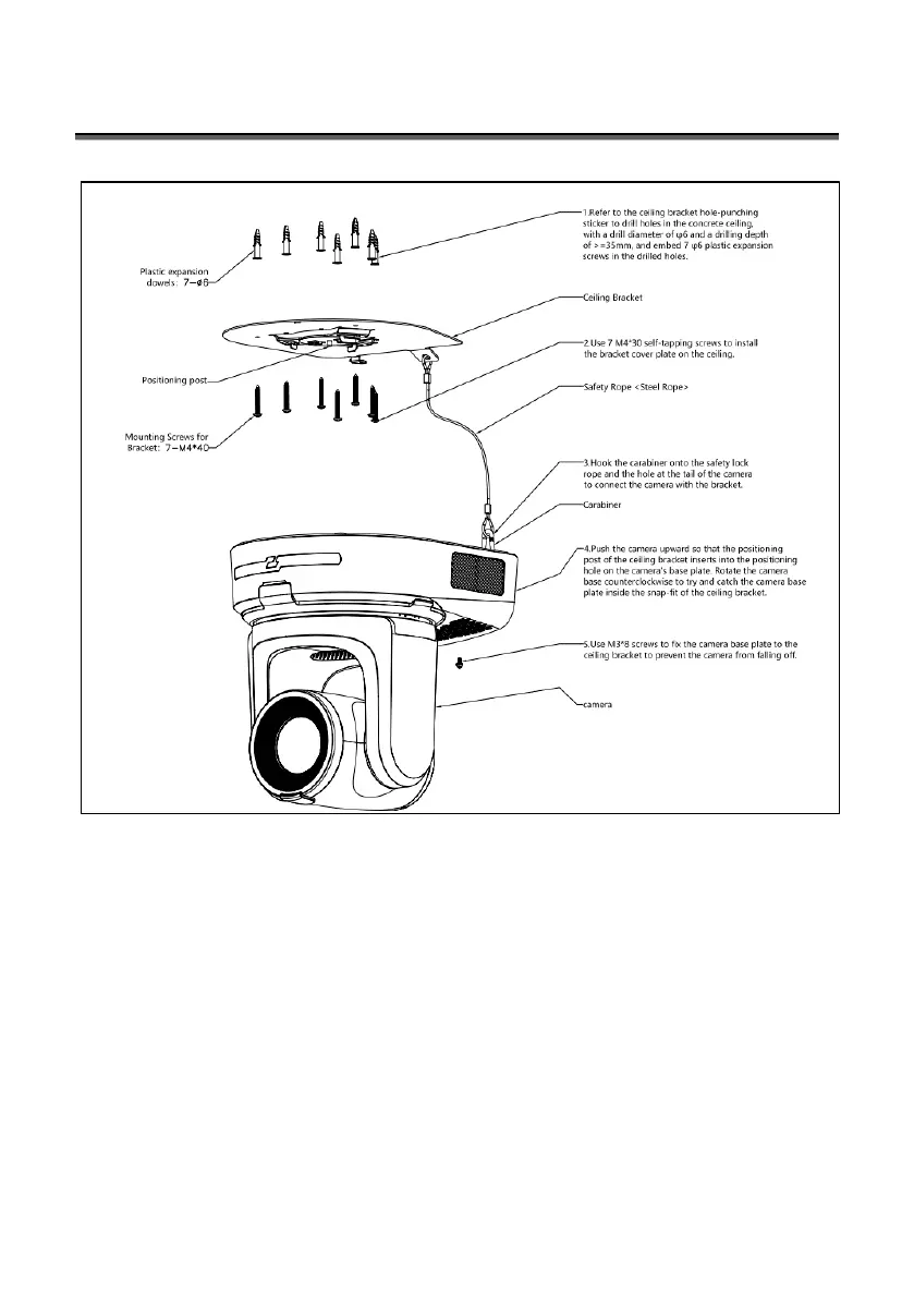 5. Use M3*8 screws to fix the camera base plate to the ceiling bracket to